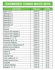 Queridas familias, ya tenemos las fechas para las Mesas de Exámenes del nivel Secundario. En la siguiente tabla le mostramos la fecha y la hora correspondiente a cada Materia.